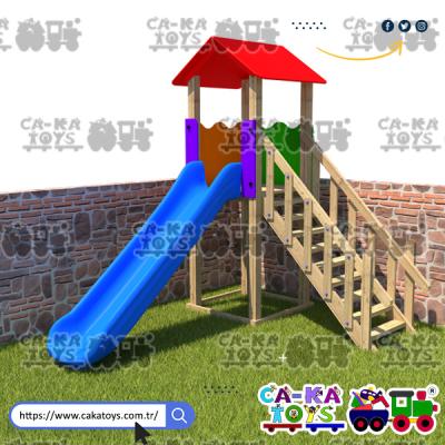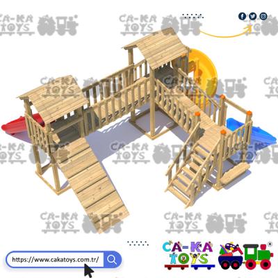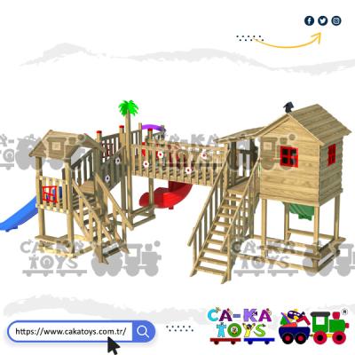 CK-110080 Ahşap Dağ Evi Oyun Parkı Çift Kaydıraklı