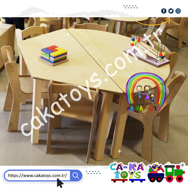 Trapez Masa ve Yarım Daire Masanın yan yana gelmesiyle oluşmuştur. Masalar birbirinden bağımsız olarak ta kullanılabilir.