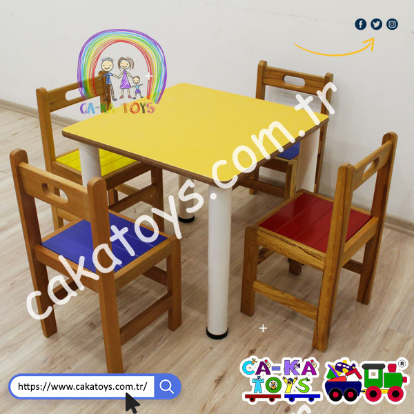 CK-309060 Ahşap Kare Anaokulu Masası 60x60 cm / Metal Ayaklı